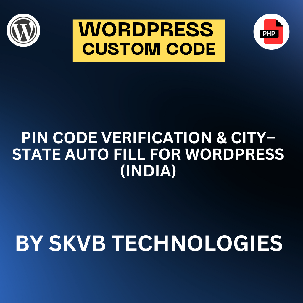 This Indian PIN Code Verify & Auto-Fetch custom snippet solves that problem by automatically fetching City and State as soon as a user enters a valid 6-digit PIN code. It uses India Post’s official data, works via AJAX, and integrates smoothly with WordPress forms or WooCommerce checkout — no apps, no heavy plugins.